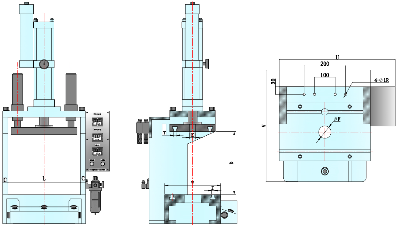 6.電控系統(tǒng)可以設定工作周期和保壓時間,設定并記錄工作次數。